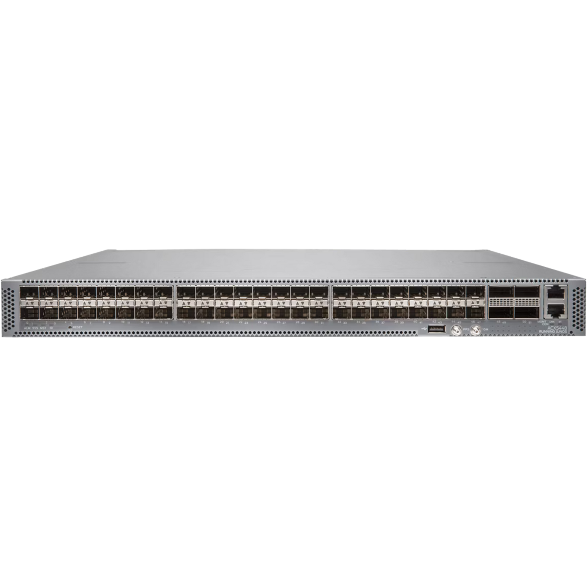 ACX5448; AC; Back to Front; 48x1GE/10GE and 4x100GE; Includes: L2 features, IGP, 24X10GE Ports, 2x100GE Ports, all 1GE, 25GE and 40GE ports, FIB up to 256K; no right to use MPLS, VRF and BGP